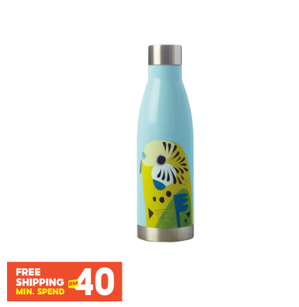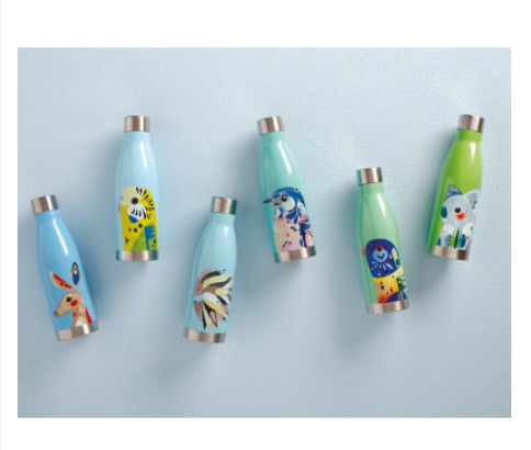 This drink bottle from the Pete Cromer collection features a Kookaburra based on an original collage artwork.